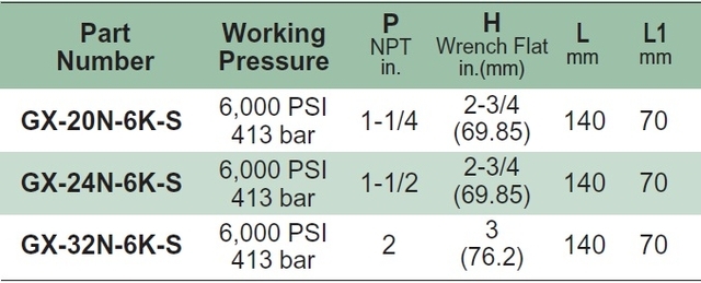 Female NPT Especially designed for piping systems over 1'' where 6000 PSIG (413 bar) pressure rating is required.